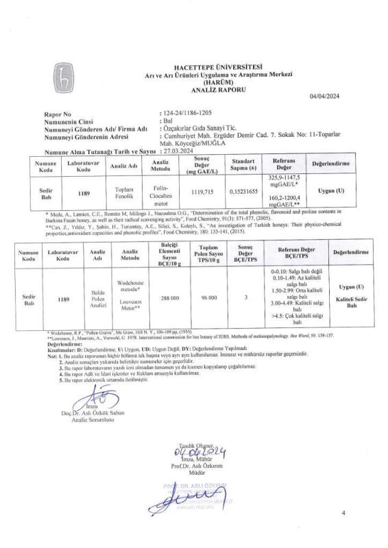 Köyceğiz Balı Sedir Balı Analiz Sertifikalarımız